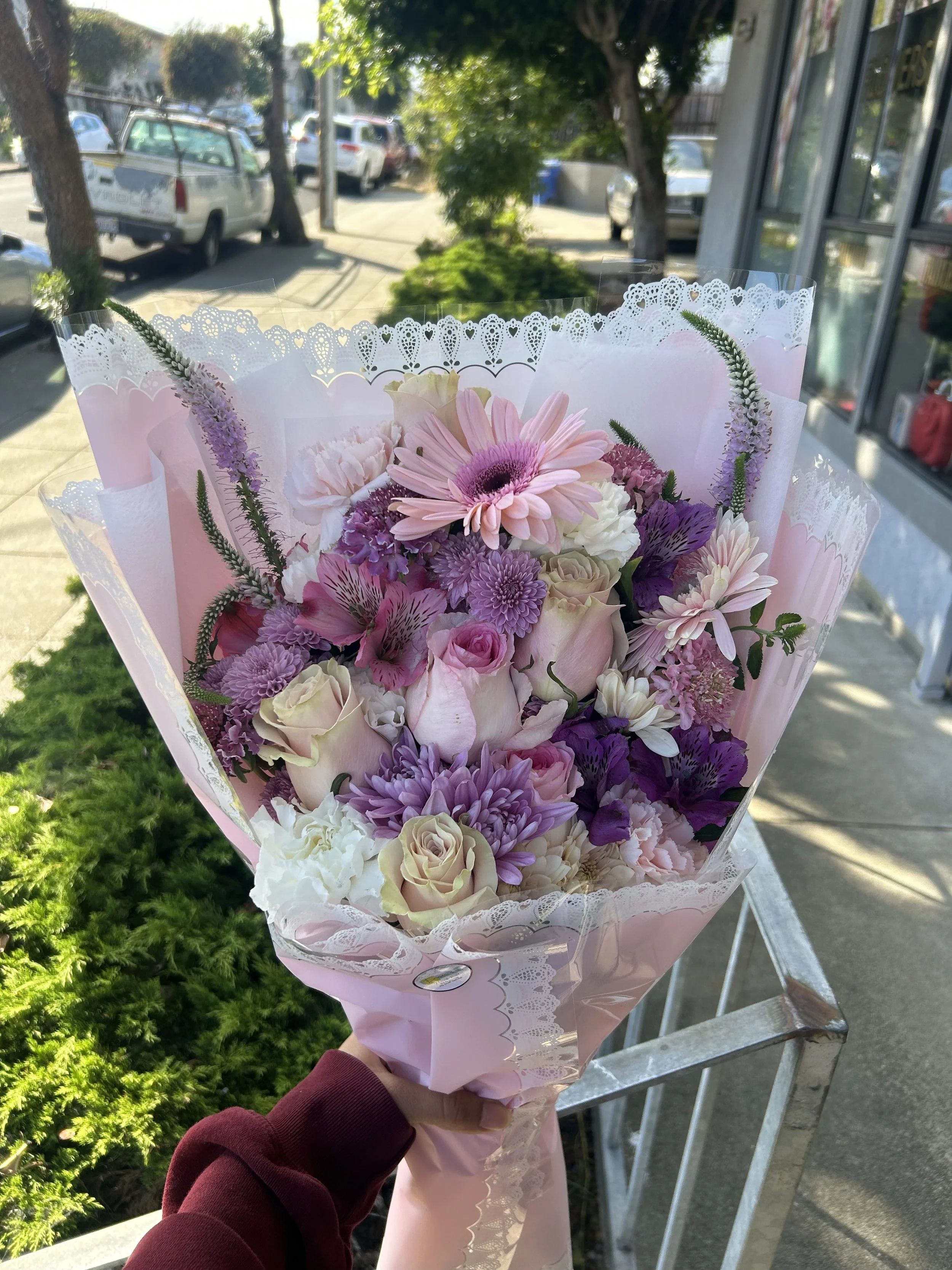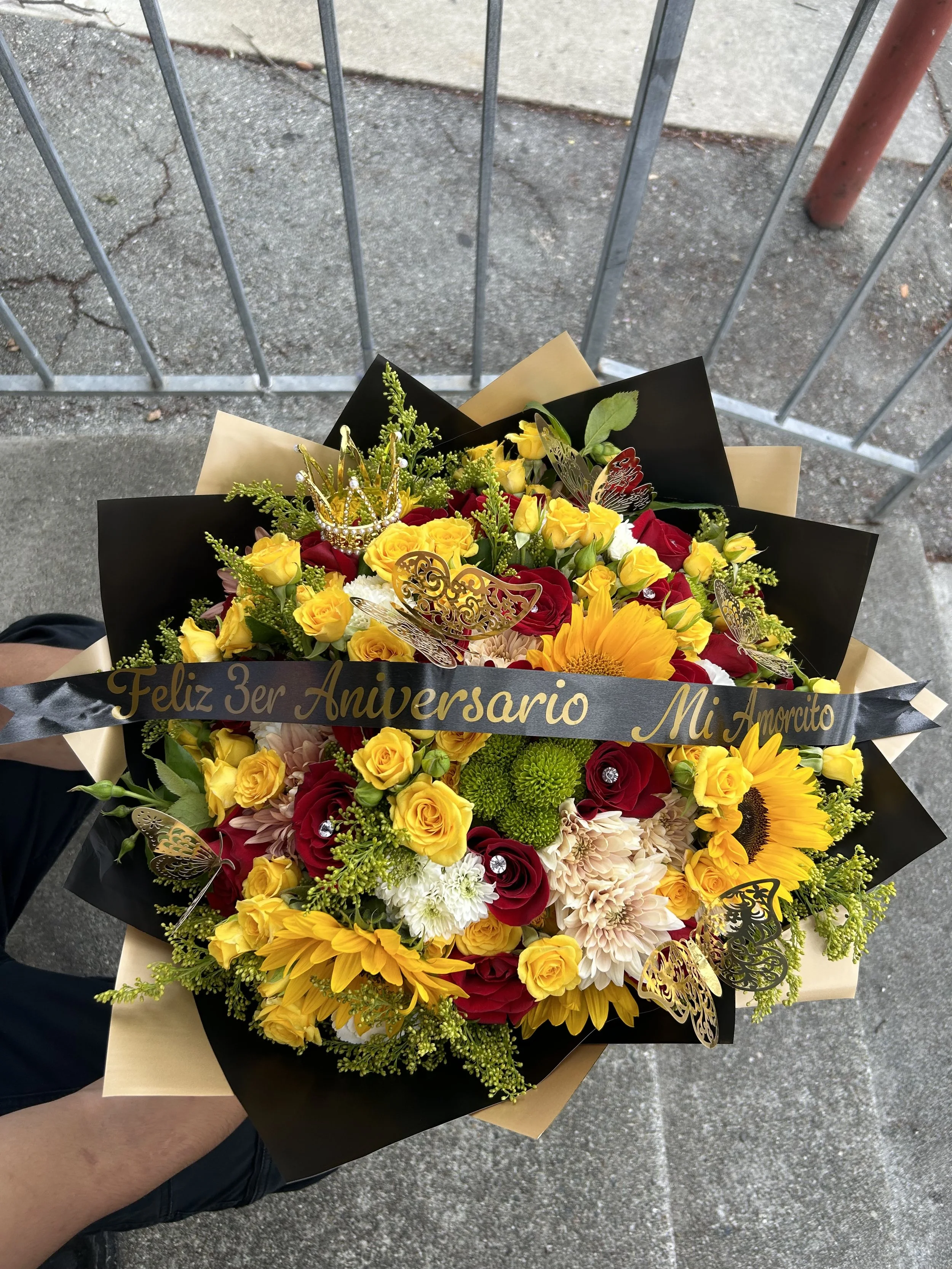 Some of our work includes large rose bouquets (Ramos buchones), mixed flower bouquets, large basket arrangements, vase arrangments, and balloon decorations!